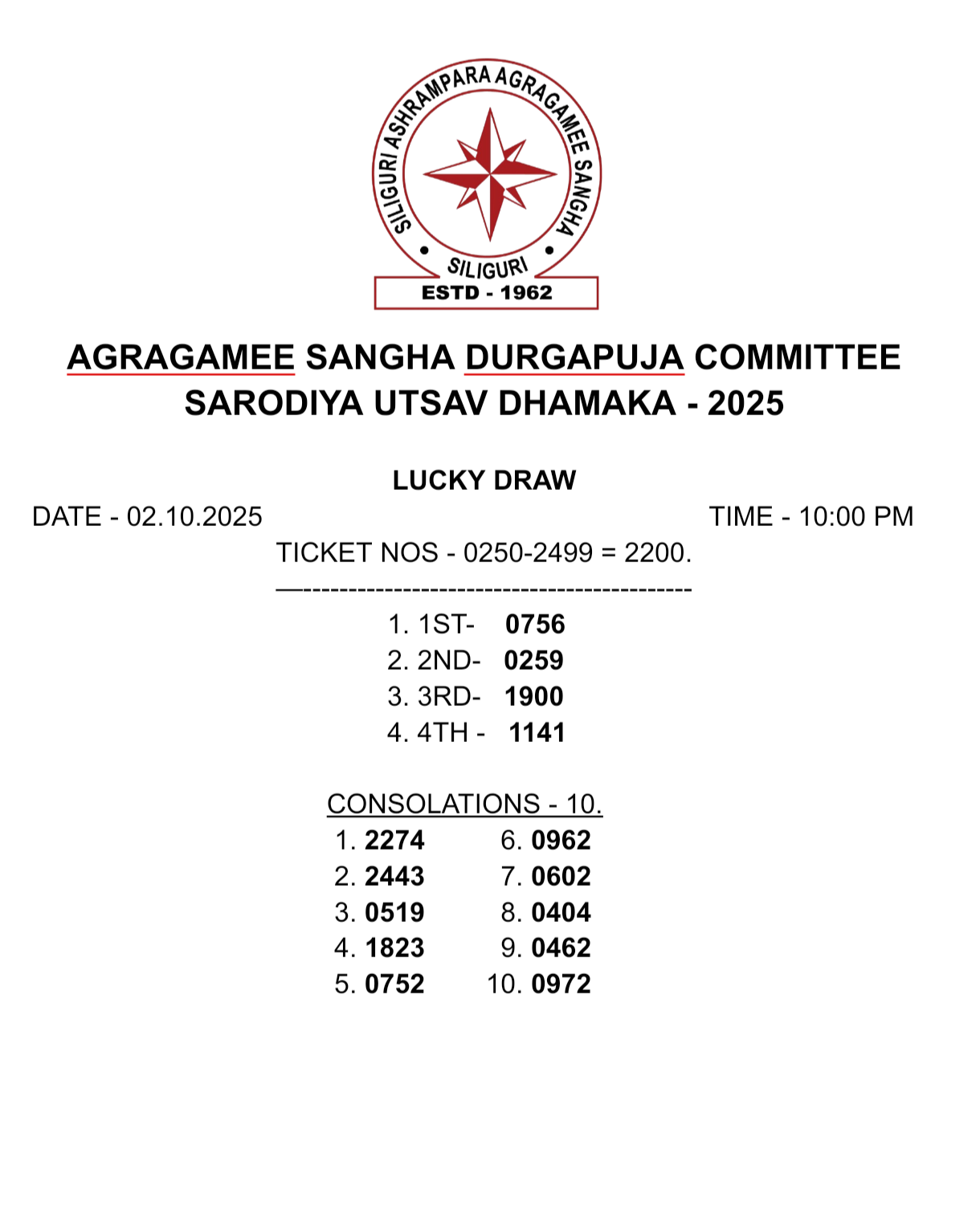 The lucky draw held on 2nd October, 2025 will be published here. The result will be displayed below.